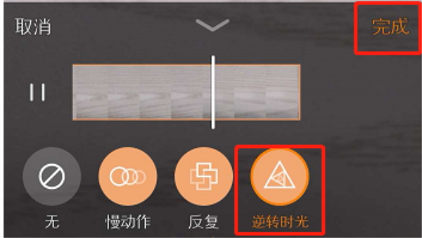 5、点击“时间特效”里的“逆转时光”,最后点击“完成”即可。