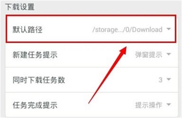 选择系统设置--高级设置,在其中找到“下载设置”,我们可以看到软件对下载文件设置了默认路径。
