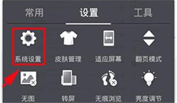 1、首先点击uc浏览器的菜单键,点击设置,再点击系统设置;