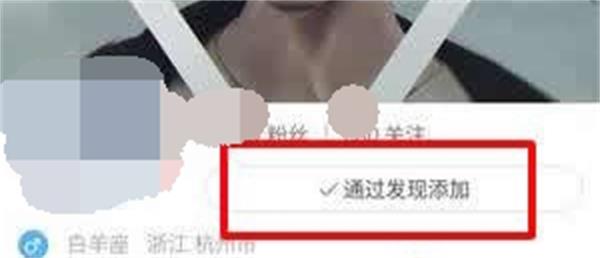 在对方个人资料展示页面中点击【通过发现添加】按钮;