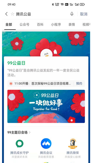 1、打开手机微信,搜索【腾讯公益】,然后点击【99公益日】活动进入,或点击上方地址直接进入;