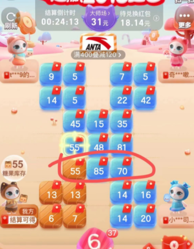 反之大于6的格子也是这样操作的,当泡泡的数字大于蓝色格子的数的时候就可以占领对方该格了。