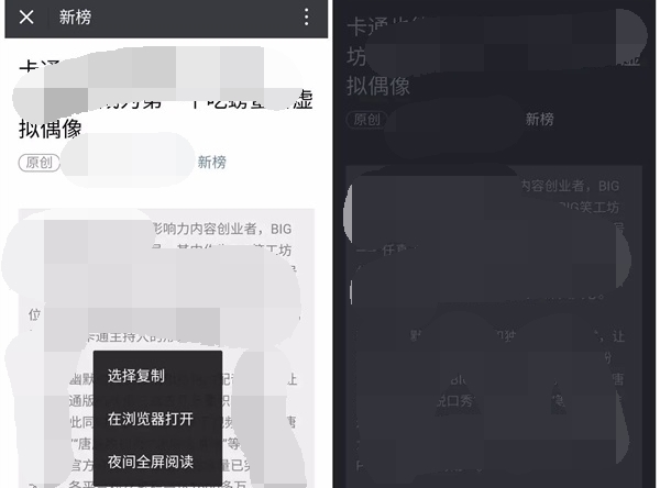 微信看文章也能夜间模式了,点击你正在看的文章会出现对话框,选择“夜间全屏阅读”,屏幕就会变成暗色。想退出夜间模式,直接点击返回键即可。