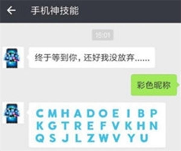 首先,要关注一个名为“手机神技能”的公众号,回复“彩色昵称”,即可获得所有彩色字母的素材。