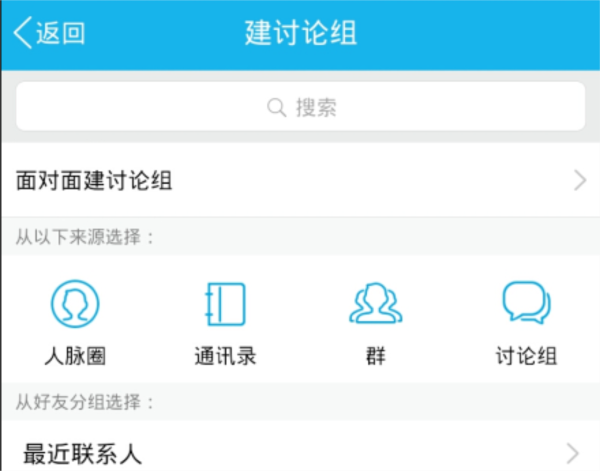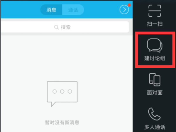 2)单击之后会看到有一个“建讨论组”选项,选择该选项。